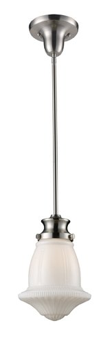 Finish:Satin Nickel, Glass:Opal White Blown Glass, Light Bulb:(1)75w A19 Med F Incand School House Pendant In the early 1900s, schoolhouses, banks and other public institutions began using fully enclosed pendants that not only gave off an abundance of light, but were also easy to clean and maintain. The period authentic styling is reflected in the fluted or patterned blown glass. These exclusive pendants exemplify the uncompromising historic styling. One 6 and two 12 rods with swivel included